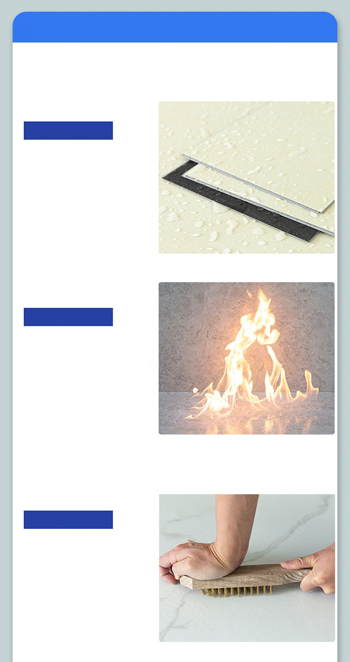 ประสิทธิภาพการกันลื่น: ประสิทธิภาพการกันลื่นสูงขึ้นเมื่อสัมผัสกับน้ำ เหมาะสำหรับสถานที่สาธารณะที่มีข้อกำหนดด้านความปลอดภัยสูง เอฟเฟกต์ฉนวนกันเสียง: เอฟเฟกต์ฉนวนกันเสียงที่ดีซึ่งสามารถลดการก้าวเท้าได้