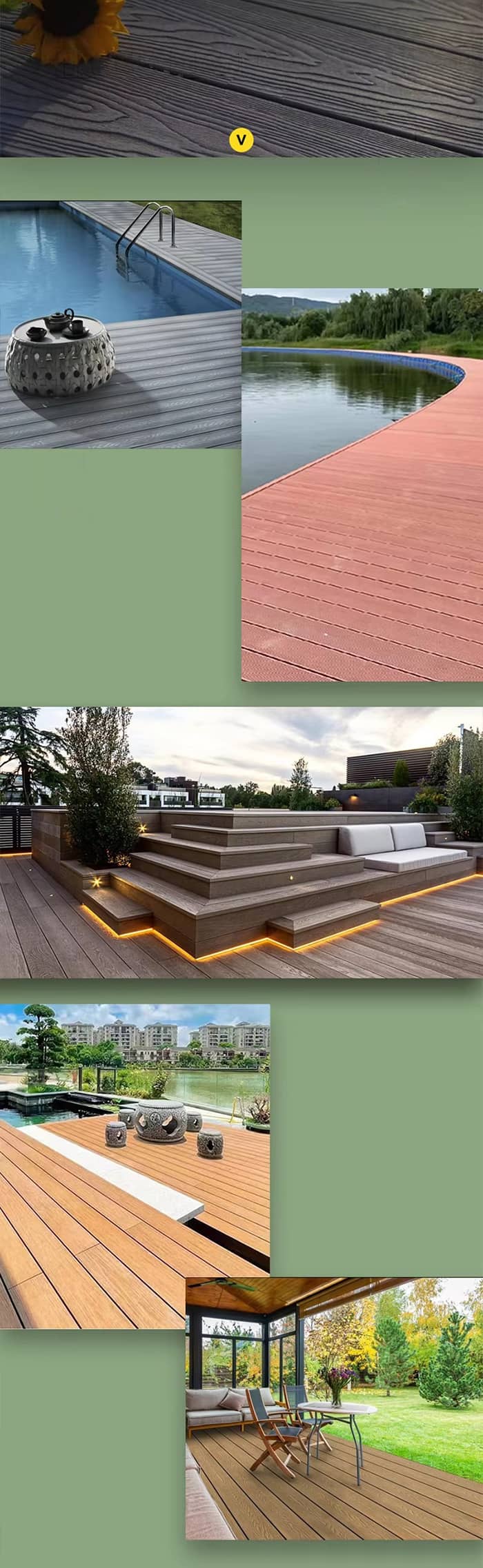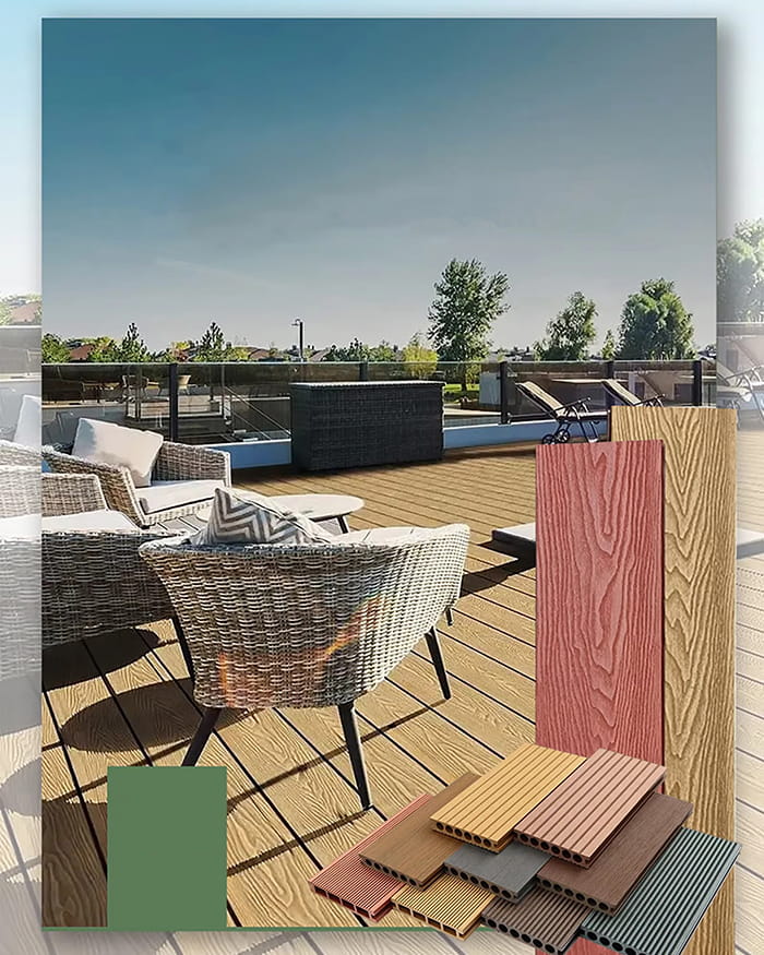 พื้น WPC ชื่อเต็ม Wood Plastic Composite เป็นผลิตภัณฑ์วัสดุคอมโพสิตไม้พลาสติกชนิดใหม่ที่เป็นมิตรต่อสิ่งแวดล้อม ส่วนใหญ่ทำจากพลาสติกและเส้นใยไม้ โดยมีสารเคมีและสารตัวเติมเล็กน้อย และผ่านกระบวนการโดยใช้อุปกรณ์ผสมแบบพิเศษ พื้นนี้มีคุณสมบัติหลักทั้งพลาสติกและไม้ มีความทนทานและมีอายุการใช้งานยาวนาน อีกทั้งยังมีรูปลักษณ์ของไม้ที่เป็นธรรมชาติอีกด้วย มีความแข็งกว่าผลิตภัณฑ์พลาสติกทั่วไปและมีคุณสมบัติต่อต้านริ้วรอยได้ดี นอกจากนี้พื้น WPC จะไม่ก่อให้เกิดปัญหาเช่นรอยแตกร้าวและการบิดเบี้ยว โดยสืบทอดคุณสมบัติขั้นที่สองของการแปรรูปไม้ และสามารถเลื่อย ไส ติดกาว และซ่อมแซมได้ง่าย