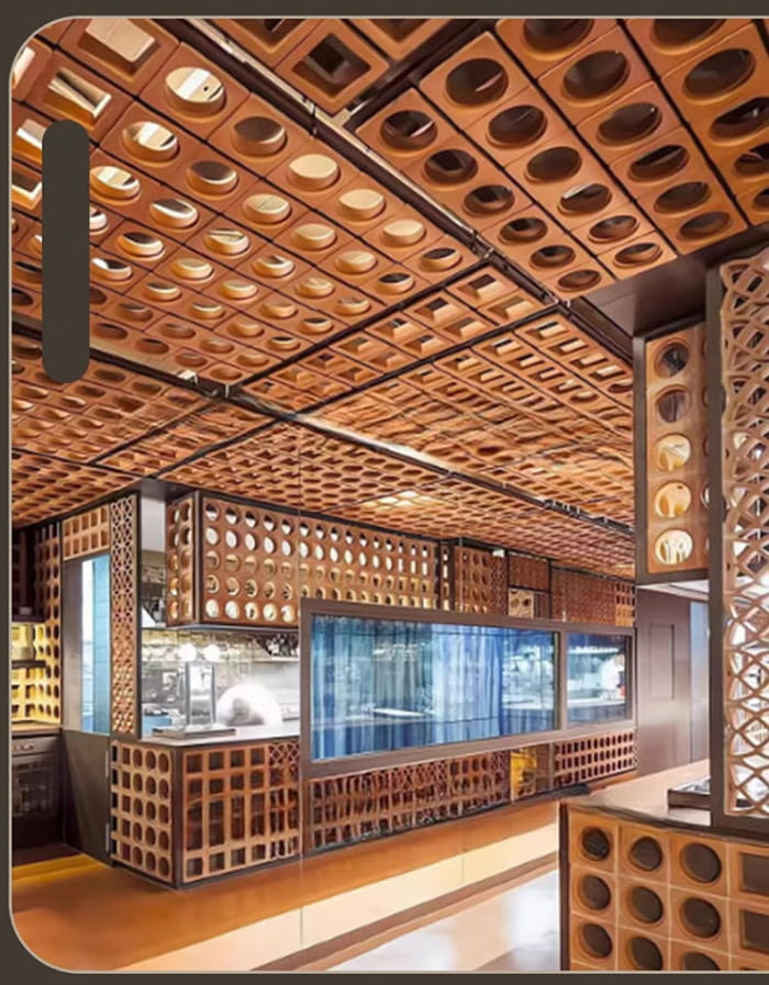การตกแต่งทางสถาปัตยกรรม ผนัง/เพดานภายใน : การออกแบบเช่นการแปรงโลหะและการถ่ายทอดลายไม้ช่วยเพิ่มพื้นผิวของพื้นที่และเหมาะสำหรับโรงแรม ห้องนิทรรศการ วิลล่า ฯลฯ