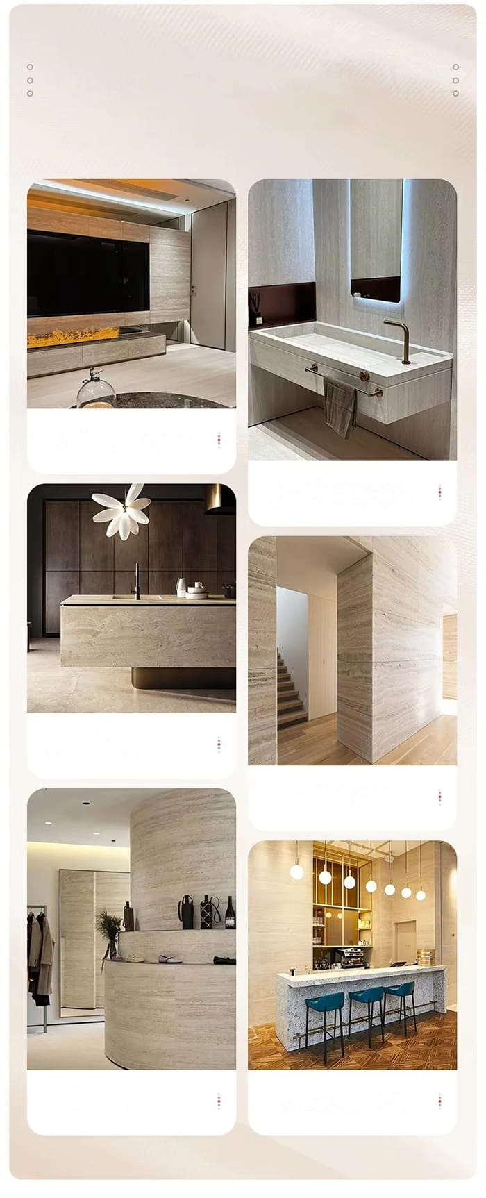 ผนังภายในอาคาร: สามารถใช้สำหรับการตกแต่งผนังภายในที่อยู่อาศัย สำนักงาน โรงแรม ห้างสรรพสินค้า โรงเรียน โรงพยาบาล อาคารสำนักงาน วิลล่า ชุมชนระดับไฮเอนด์ ฯลฯ เช่น ผนังพื้นหลัง ห้องครัว ห้องน้ำ และพื้นที่อื่น ๆ