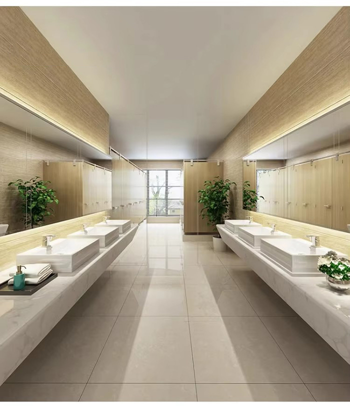 พื้นที่เชิงพาณิชย์โรงแรม/ห้างสรรพสินค้า :การออกแบบลายไม้/ลายหินช่วยเพิ่มพื้นผิวของพื้นที่และรองรับการถอดแยกชิ้นส่วนและปรับปรุงใหม่อย่างรวดเร็ว (อัตราการใช้ซ้ำ ≥ 90%)