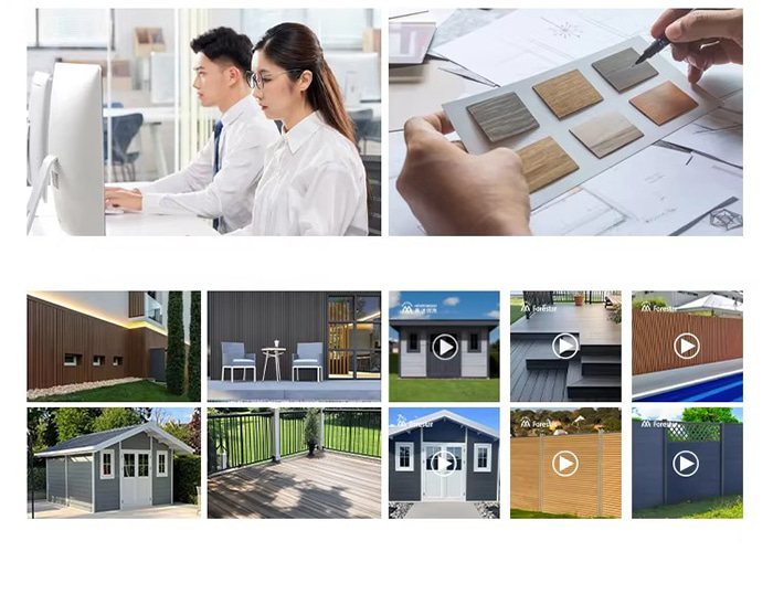 ลานภายใน/สวน : ลักษณะลายไม้เลียนแบบเป็นธรรมชาติและสวยงาม และไม่จำเป็นต้องทาสีบำรุงรักษาเป็นประจำ